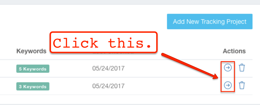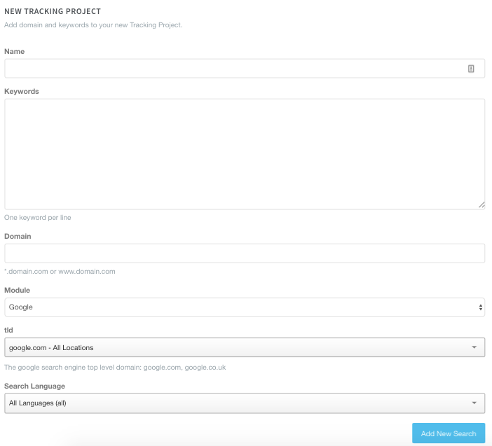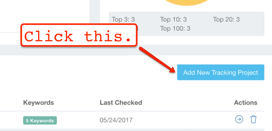 If you’d like to add a new website that you’d like to track, then simply click the blue “Add New Tracking Project” button.
