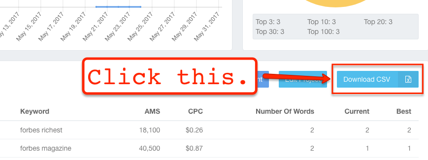 To download your project, simply click the blue, “Download CSV” button.
