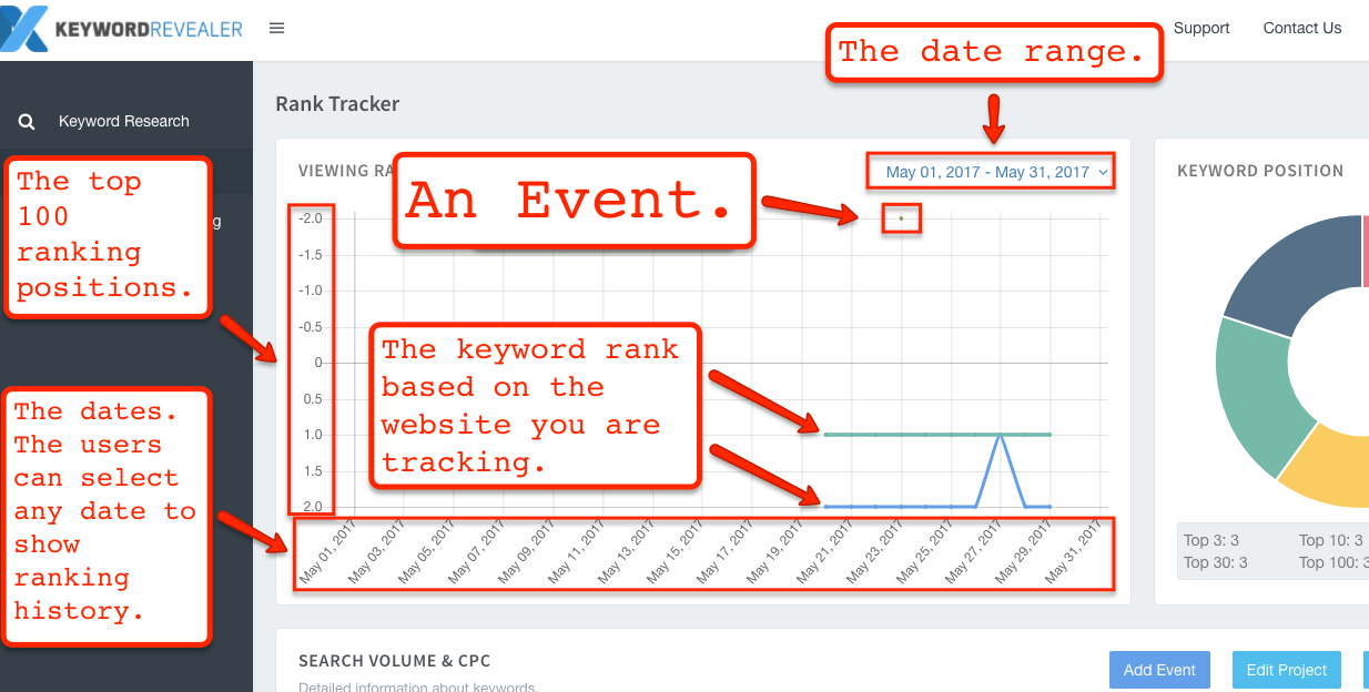 Once you’ve chosen a date, added a description, and clicked the “Save” button, a small marker will then appear in the “Viewing RankTracker” section.