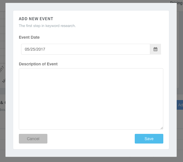 If there are events that you’d like to take note of (or track) since you think it will have an impact on your ranking, then click the “Add Event” button.